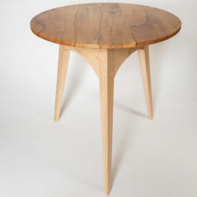 This version has a darker spalted beech top with pale ash legs and a gracefully curved apron.
